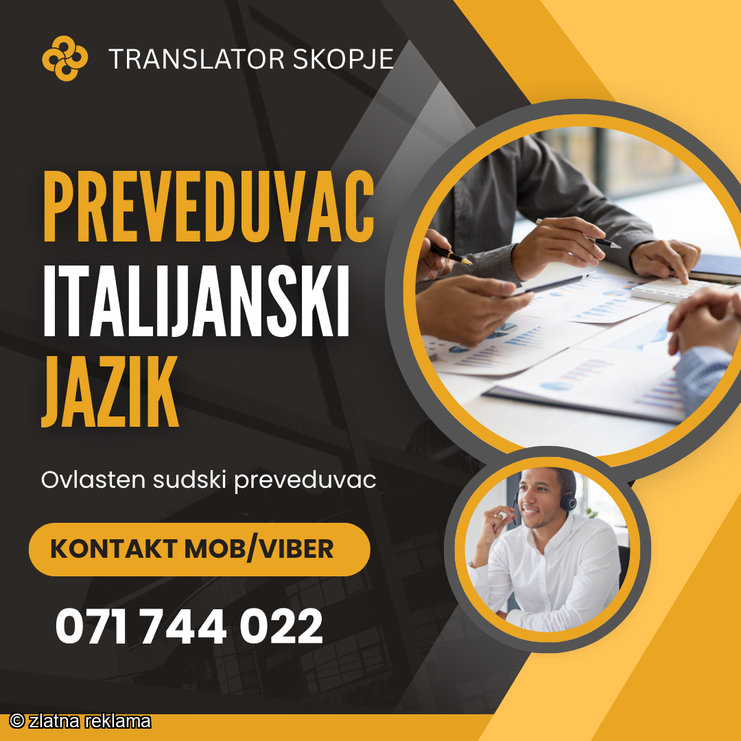 071 744 022 Prevod od italijanski jazik na makedonski jazik