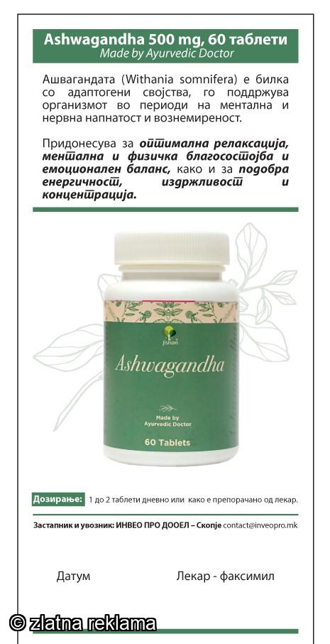 Ashwagandha (Withania somnifera) е билка која многу се користи во Ајурведа, традиционалниот хербален систем во Индија. Ashwagandha се употребува како општ тоник и „адапто...