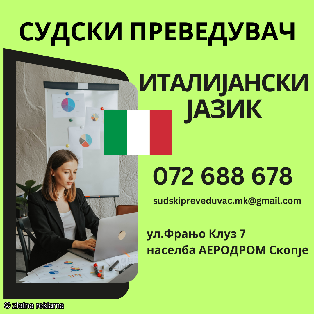 ОВЛАСТЕН СУДСКИ ПРЕВОД ОД МАКЕДОНСКИ НА ИТАЛИЈАНСКИ ЈАЗИК И ОБРАТНО, ПРЕВЕДУВАЧ