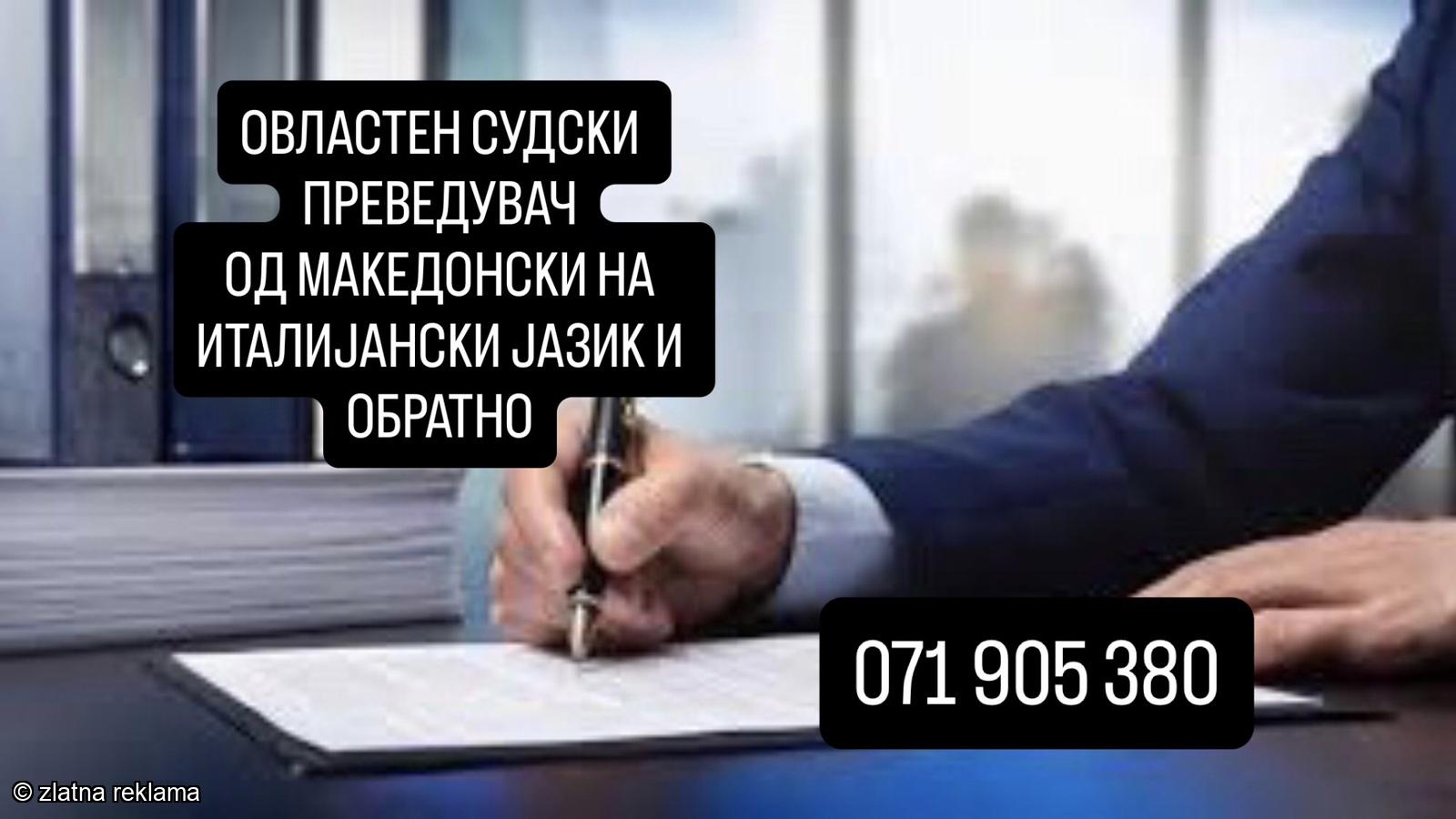 OVLASTEN SUDSKI PREVOD OD MAKEDONSKI NA ITALIJANSKI JAZIK