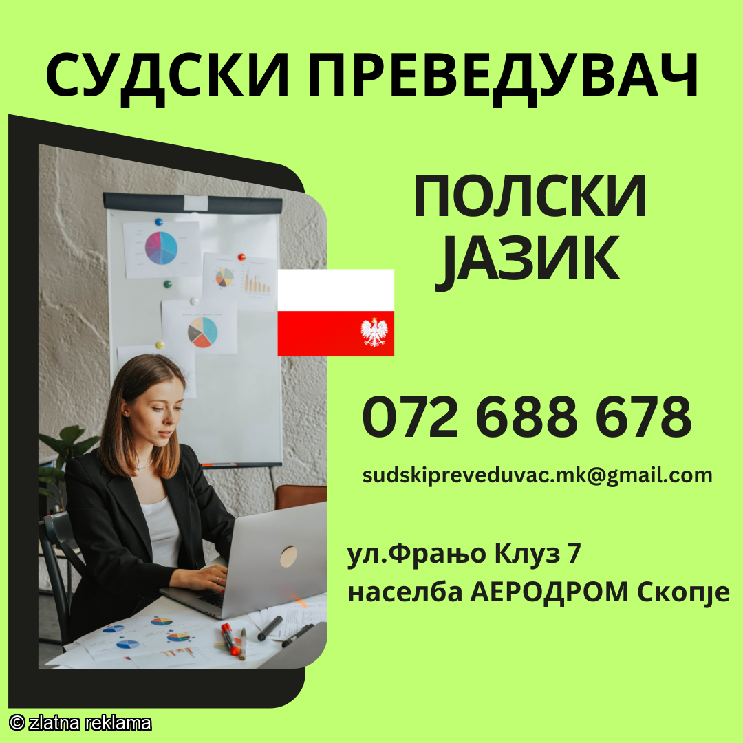 ОВЛАСТЕН СУДСКИ ПРЕВОД ОД МАКЕДОНСКИ НА ПОЛСКИ ЈАЗИК И ОБРАТНО, ПРЕВЕДУВАЧ